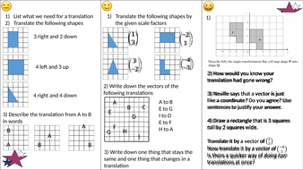 Translations worksheet (transformation of shapes) Set of resources on transformations of shapes. A collection of worksheets, presentations and a test to cover the whole topic of transformations of shapes. Suitable for the new GCSE specification and all answers included. was £7.00. Report this resource to let us know if it violates our terms and conditions. Our customer service team will ... PDF TRANSLATIONS, REFLECTIONS & ROTATIONS - drrossymathandscience Worksheet by Kuta Software LLC MODULE H TRANSLATIONS, REFLECTIONS & ROTATIONS Name_____ Date_____ ©Z t2Y0K1L6a mKfuLtVan SSnoUfUtOwSaDrpeI HLJLECQ.a Z kAWl]lF FrBixgYhttQsx rrWe`sYeJrgvyeodk.-1-Graph the image of the figure using the transformation given. 1) translation: (x, y) → (x + 2, y + 1) x y U ZF H PDF Geometry Worksheet -- Translations (Old Version) Geometry Worksheet -- Translations (Old Version) Author: Math-Drills.Com -- Free Math Worksheets Subject: Geometry Keywords: geometry, math, mathematics, translation, transformation Created Date: 9/14/2007 6:44:19 PM PDF Mathematics (Linear) 1MA0 TRANSLATION - Maths Genie Mathematics (Linear) - 1MA0 TRANSLATION Materials required for examination Items included with question papers Ruler graduated in centimetres and Nil millimetres, protractor, compasses, pen, HB pencil, eraser. Tracing paper may be used. Instructions Use black ink or ball-point pen.